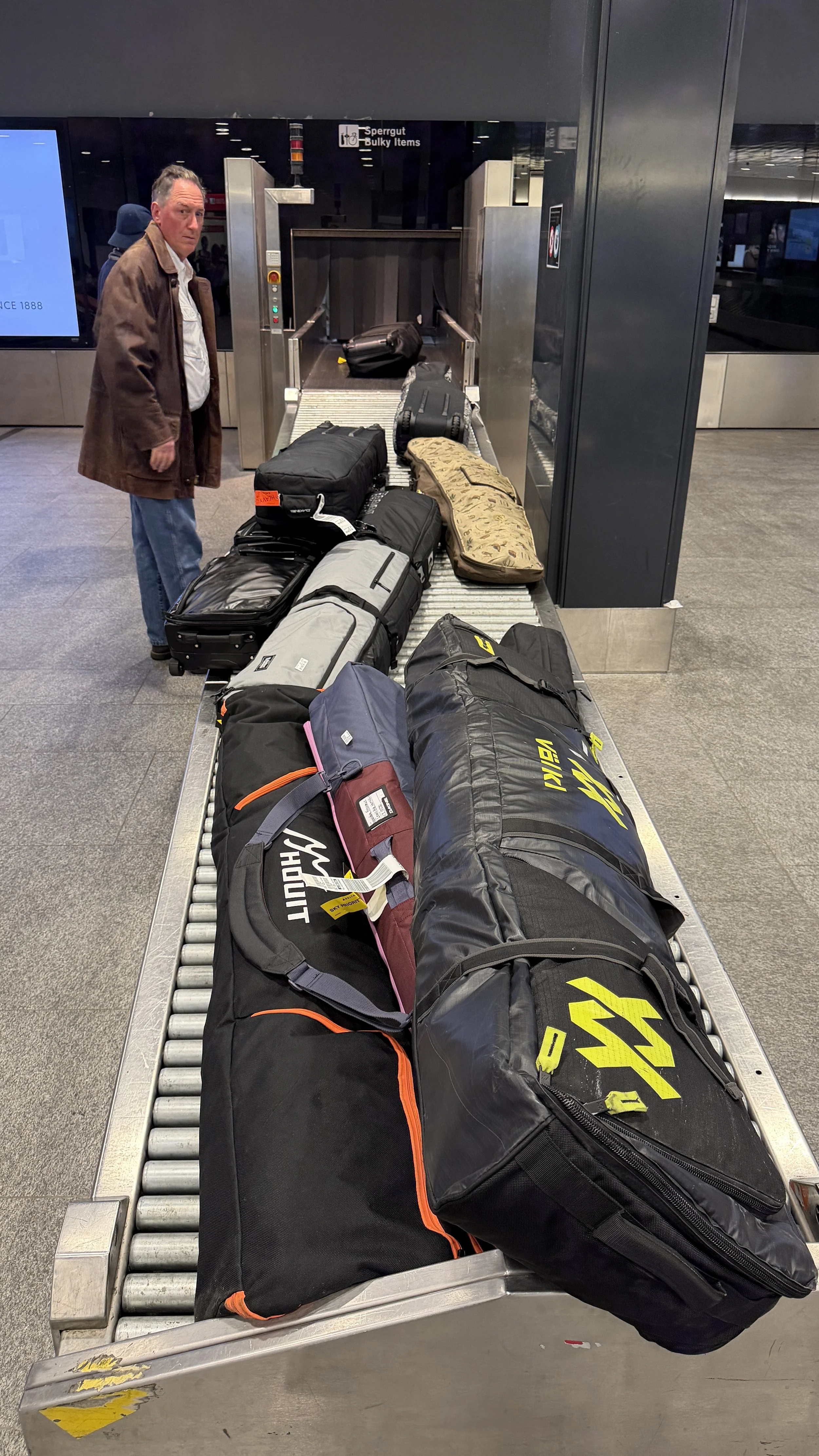 Udało nam się zdążyć tylko i wyłącznie dlatego, że mamy Europejskie paszporty i mogliśmy szybko przez automat przejść a nie czekać w kolejce do celnika i spowiadać się po co właściwie my tu jesteśmy, po drugie nawet bagaże w miarę szybko wyjechały i po trzecie Darek ogarnął odbieranie nart lepiej niż oni na lotnisku. Narty zawsze wychodzą na inna taśmę. W Denver gdzie spodziewają się setek nart jest fajna karuzela przygotowana na to. W Szwajcarii nart się chyba nie spodziewają bo mają taką małą taśmę, że jak dali 5-7 nart to już się wszystko zakorkowało i nie pójdą nowe. Dopiero Darek zaczął ściągać narty tych amerykanów co gadali z celnikiem i dostał się do swoich. Ehhh… Szwajcaria, ty się musisz nauczyć, że Amerykanie cię lubią a Amerykanie cały dorobek z sobą wezmą nie ważne czy do auta czy do samolotu.