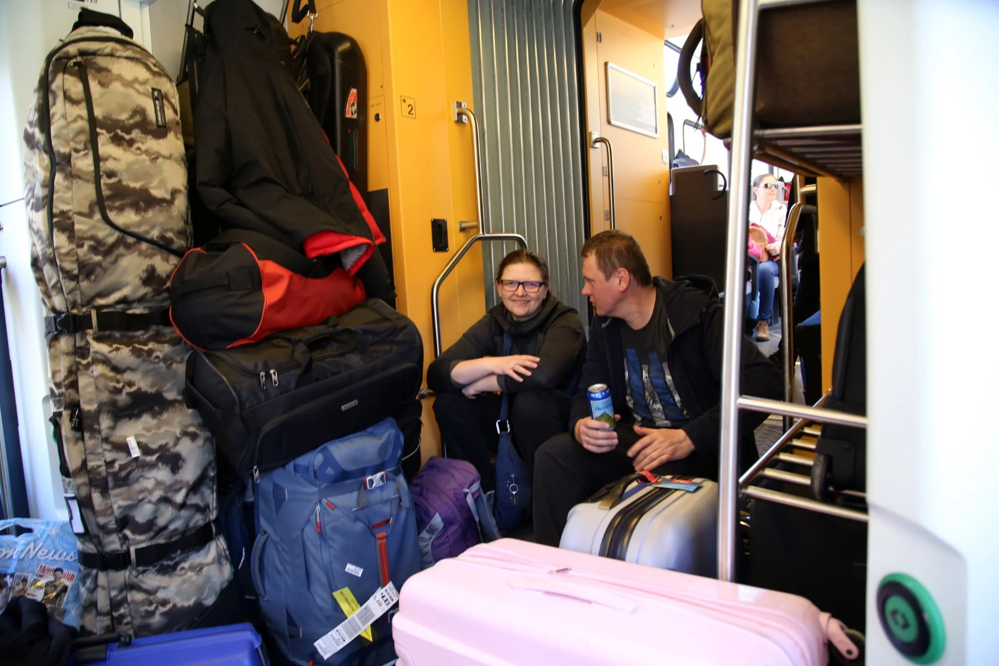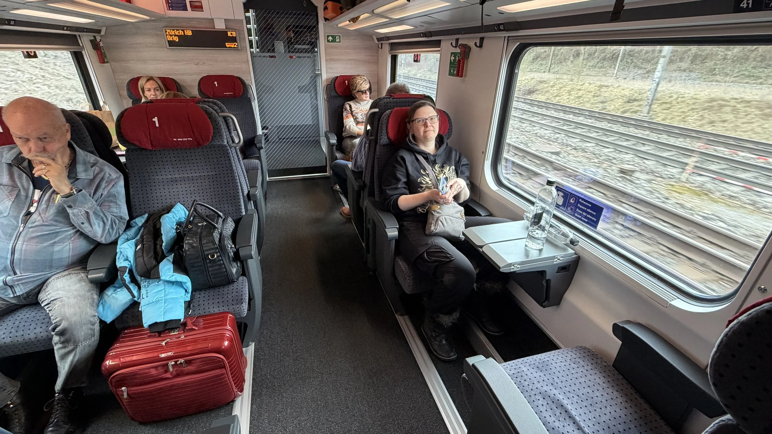 Ufff….fajnie było usiąść w pociagu. Po nocy w samolocie, bez kawy byliśmy trochę padnięci więc nie do końca ogarnęliśmy siedzenia. Siedliśmy na miejscach 42 i 43 zamiast 142 i 143. Jak zobaczyłam że numerki sa dwu cyfrowe to stwierdziłam, że pewnie 1 oznacza pierwsza klasę. Po około godzinie w pociągu doszło do nas, że przecież to jest dwu poziomowy pociąg i numerki trzycyfrowe są na górnym poziomie. Kolejna masakra. Ludzie którzy rezerwują miejsca zazwyczaj mają walizki więc czemu nie dadzą ich na dolny poziom tylko każą im dźwigać te walizki po schodach. Nasze miejsca i tak ktoś zajął więc wszystko dobrze się skończyło.