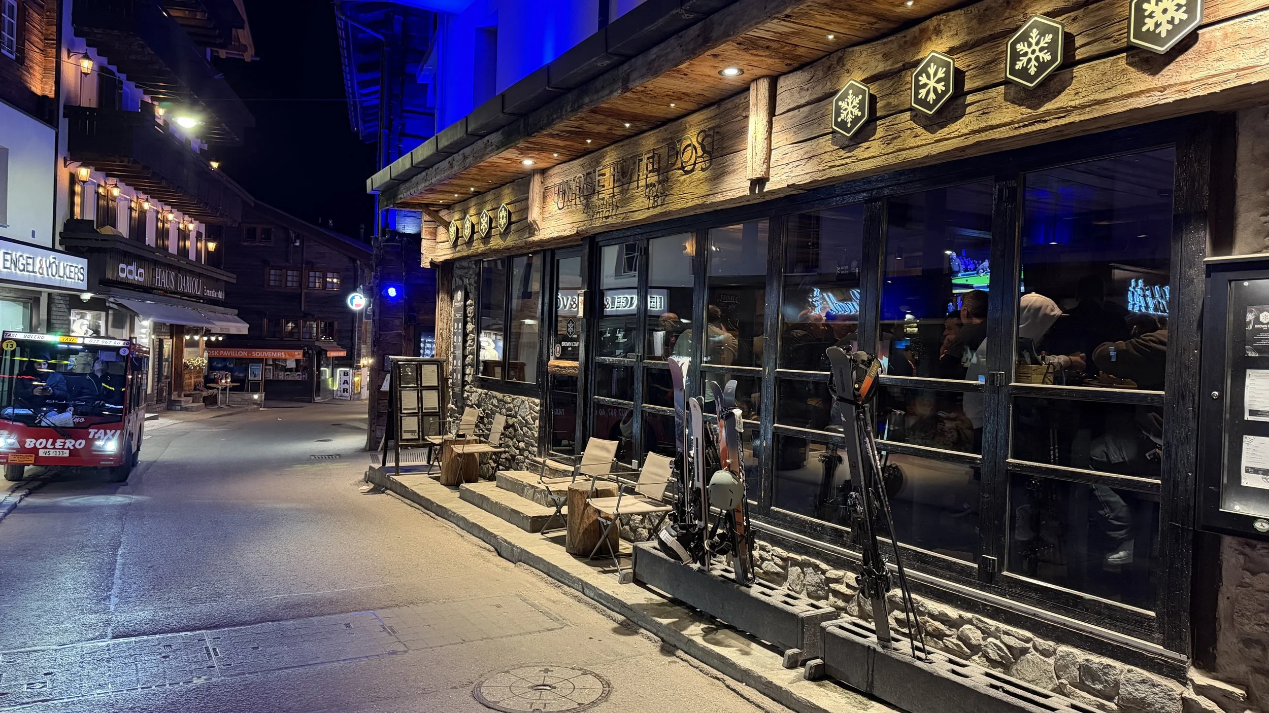 Pierwotnie planowaliśmy tylko raz dziennie jeść w restauracji a drugi posiłek mieć w apartamencie albo jakąś tylko przystawkę. Jednak skoro w Alphitta porcje nie były powalające to wypadało gdzieś iść na kolację. Postanowiliśmy odwiedzić bar Republic Zermatt.