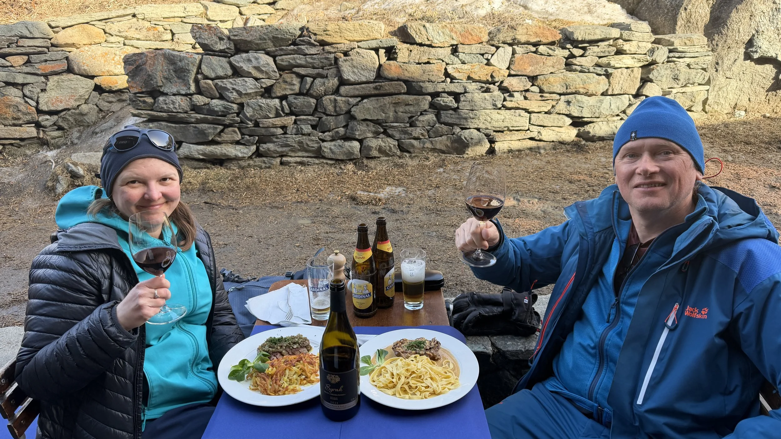 Podobno w Alpach jest taka tradycja/zabawa, że po sezonie narciarskim jak ludzie się spotykają to nie pytają się którą trasą zjechałeś czy ile dni na nartach byłeś. Tam jest ważne jaką butelkę zamówiłeś do lunchu i oczywiście ten kto najdroższą i największą to wygrywa. Dlatego tu butelki w rozmiarach magnum widać na co drugim stoliku. A my głupi amerykanie oceniamy sezon narciarski po ilości dni na nartach.