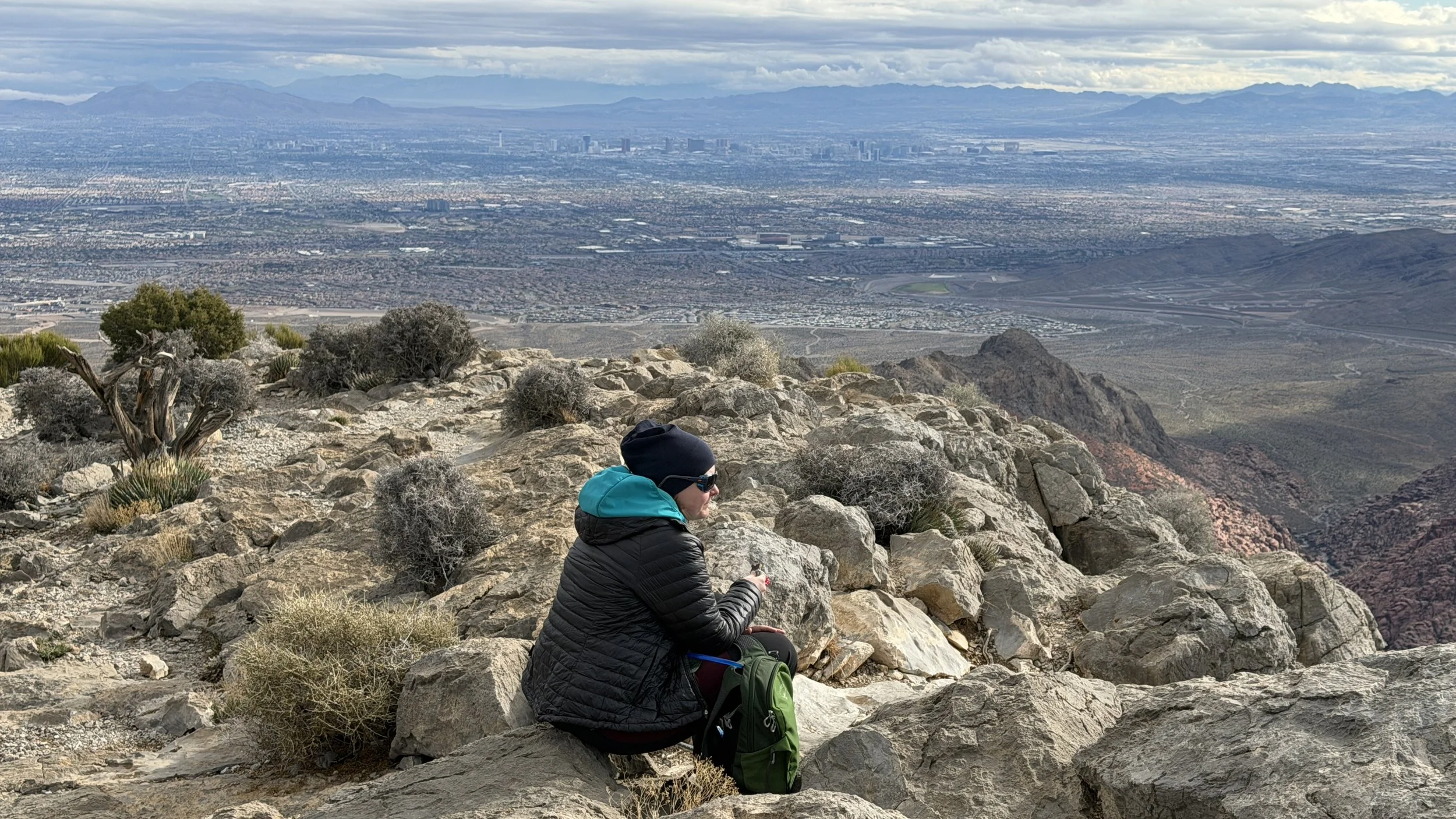 Widok w każdą stronę był interesujący. Z jednej strony Las Vegas, z drugiej ośnieżone góry w których byliśmy wczoraj. Z kolejnej przepiękny Red Rock kanion, a na północ jeszcze wyższe góry tego parku.