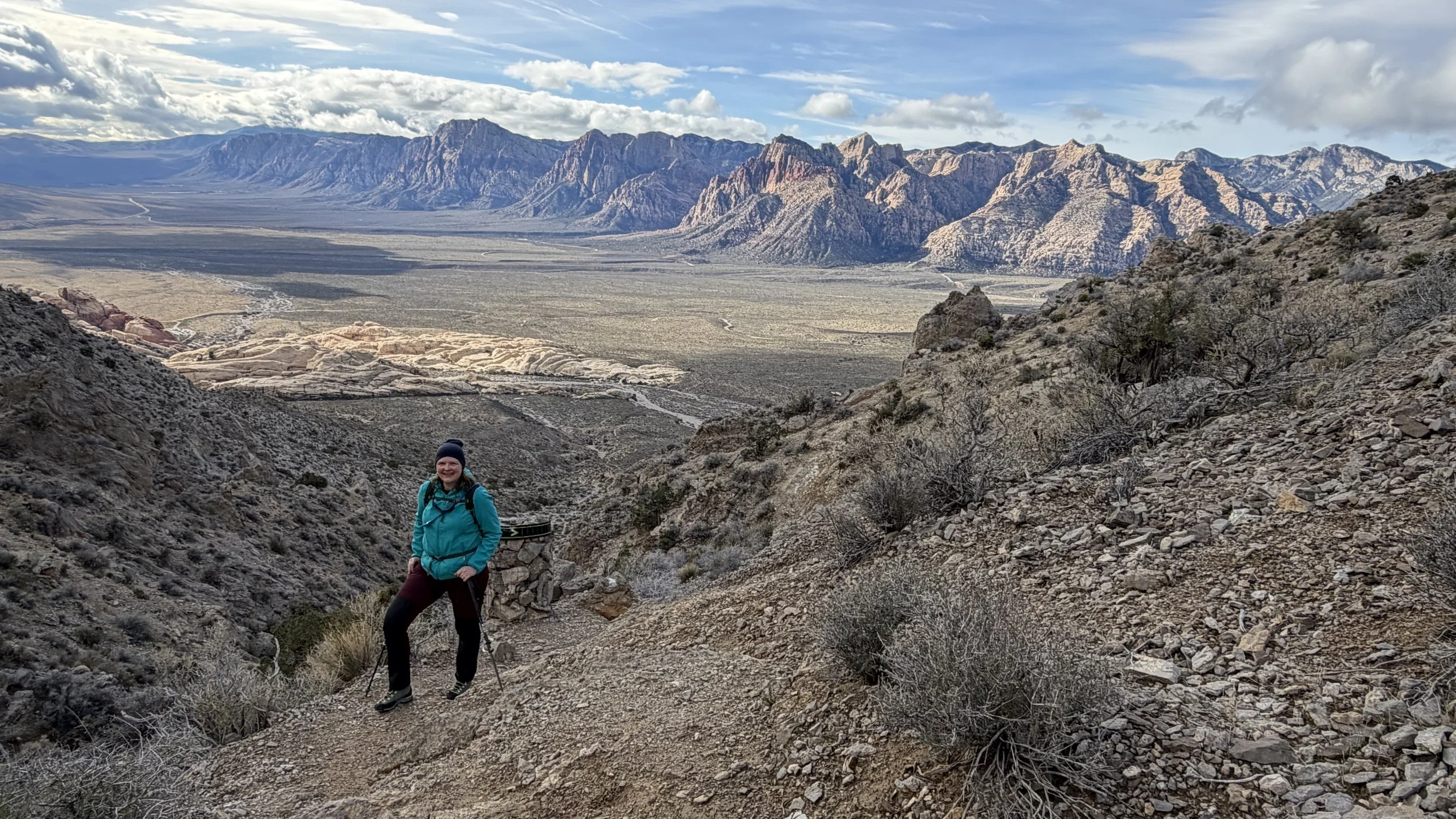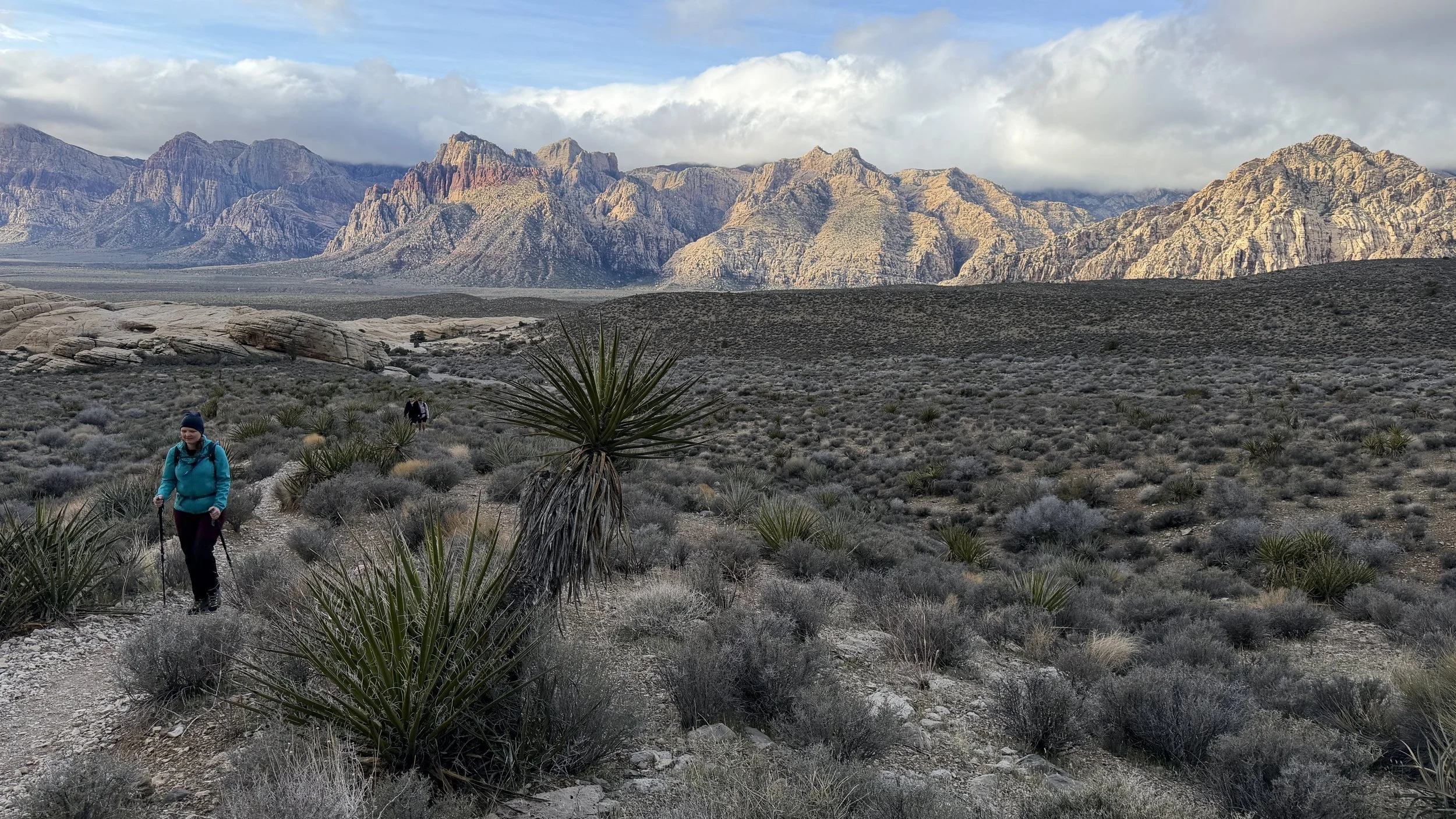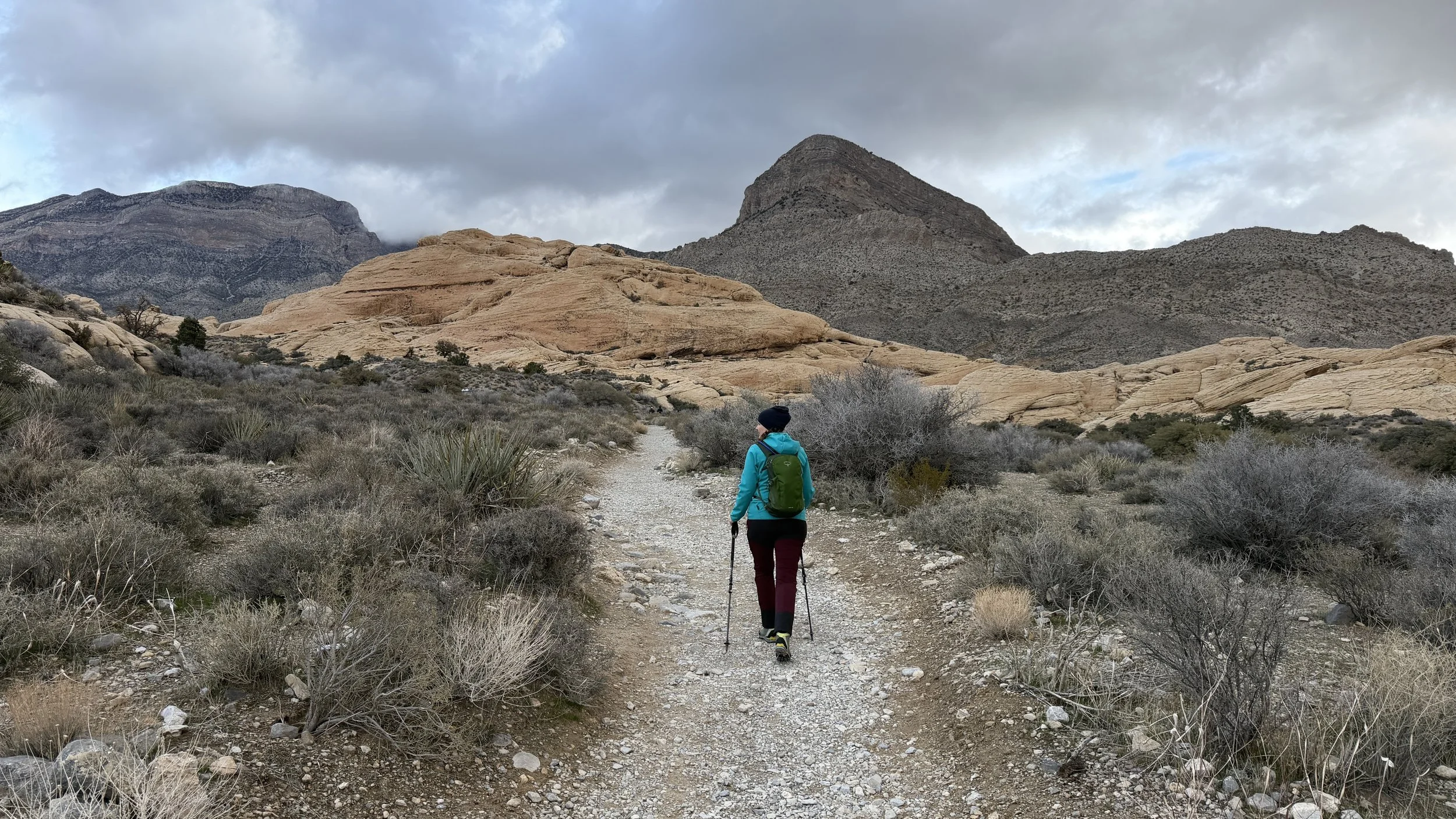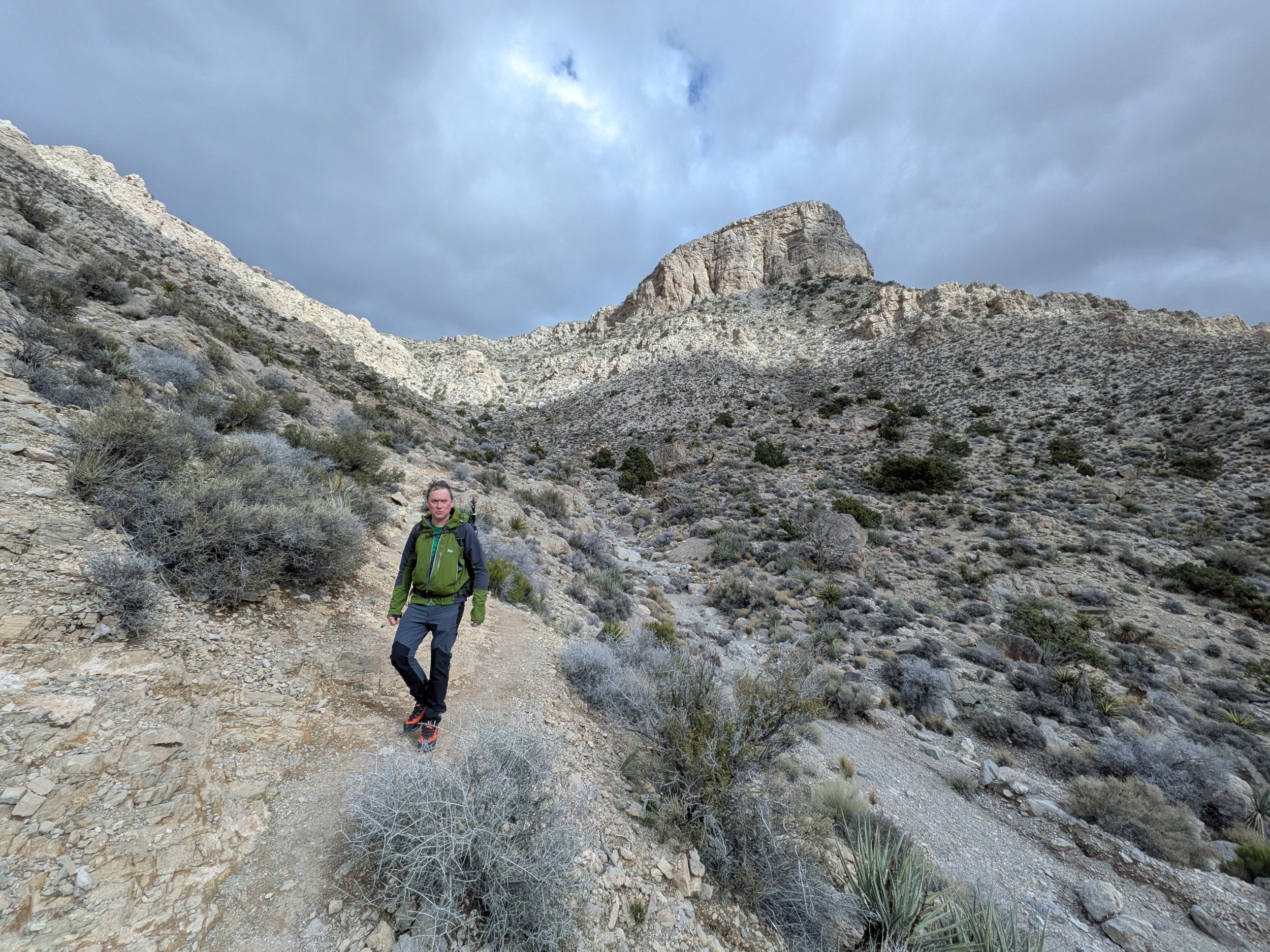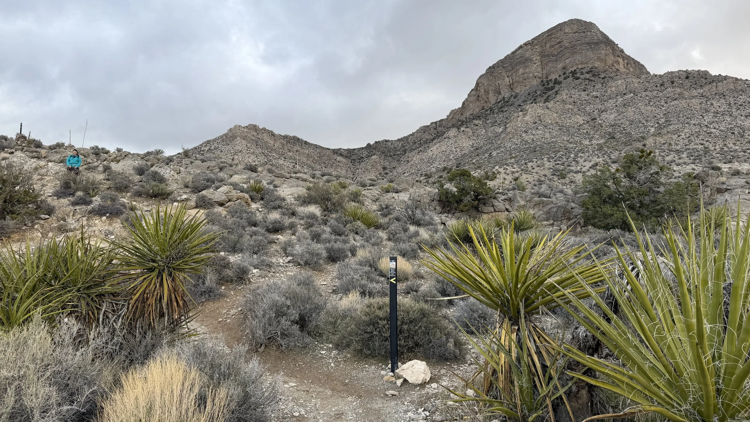 Hike ma parę kilometrów w każdym kierunku i jakieś 700 metrów przewyższenia. W początkowym etapie idziesz po w miarę płaskim, pustynnym terenie porośniętym niskimi krzakami