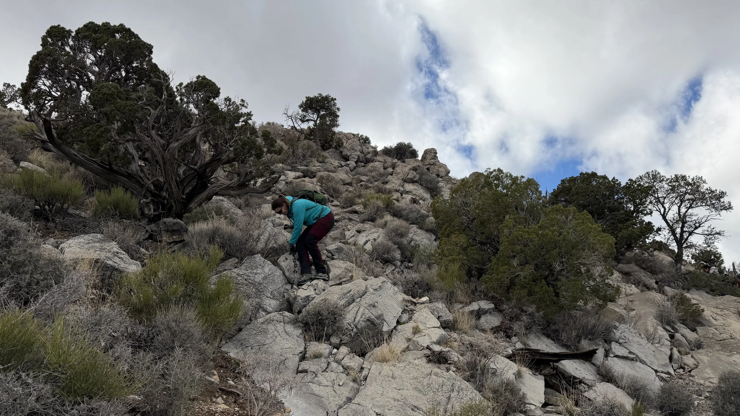 Łatwa do odnajdywania ścieżka zamieniła się w stromsze podejście. Wysuszona ziemia ustąpiła piargom i skałom.