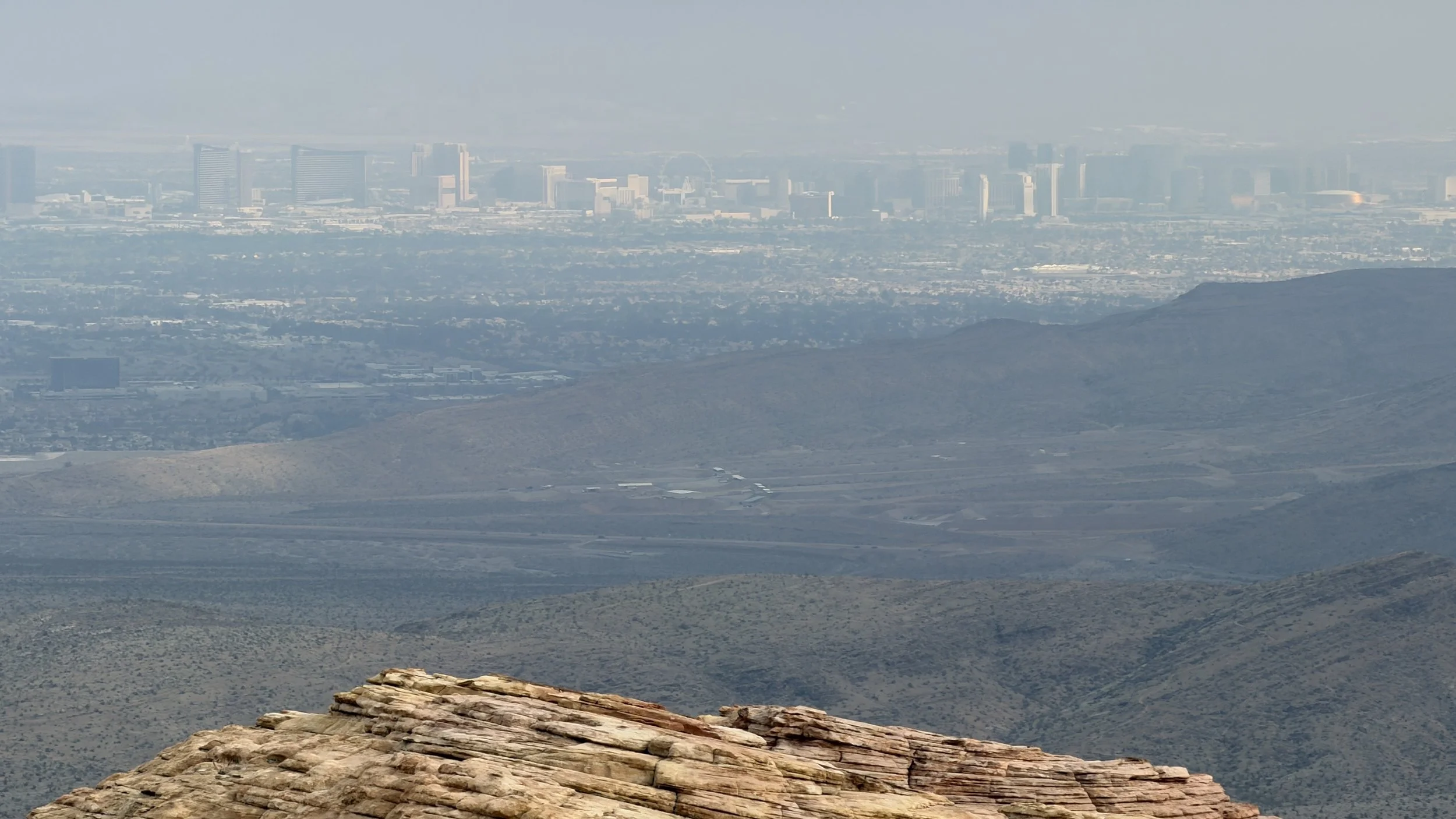 Nagrodą jest wspaniały widok na Las Vegas ze szczytu. Tak też pewnie jest, ale niestety pogoda nie dopisała. Coś tam było widać, ale nie jak przy pogodzie z idealną przejrzystością. Wszystko było lekko zamazane.